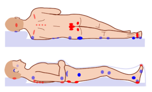 Места наиболее частого возникновения пролежней можно увидеть на рисунке