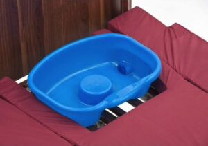 Если пациент может сидеть, то процедуру ухода за волосами производят над ванной или раковиной, как удобно пациенту. Если же человек не может сидеть, то для мытья используют надувные ванночки, либо специальные тазики со сливом воды и выемкой для головы.